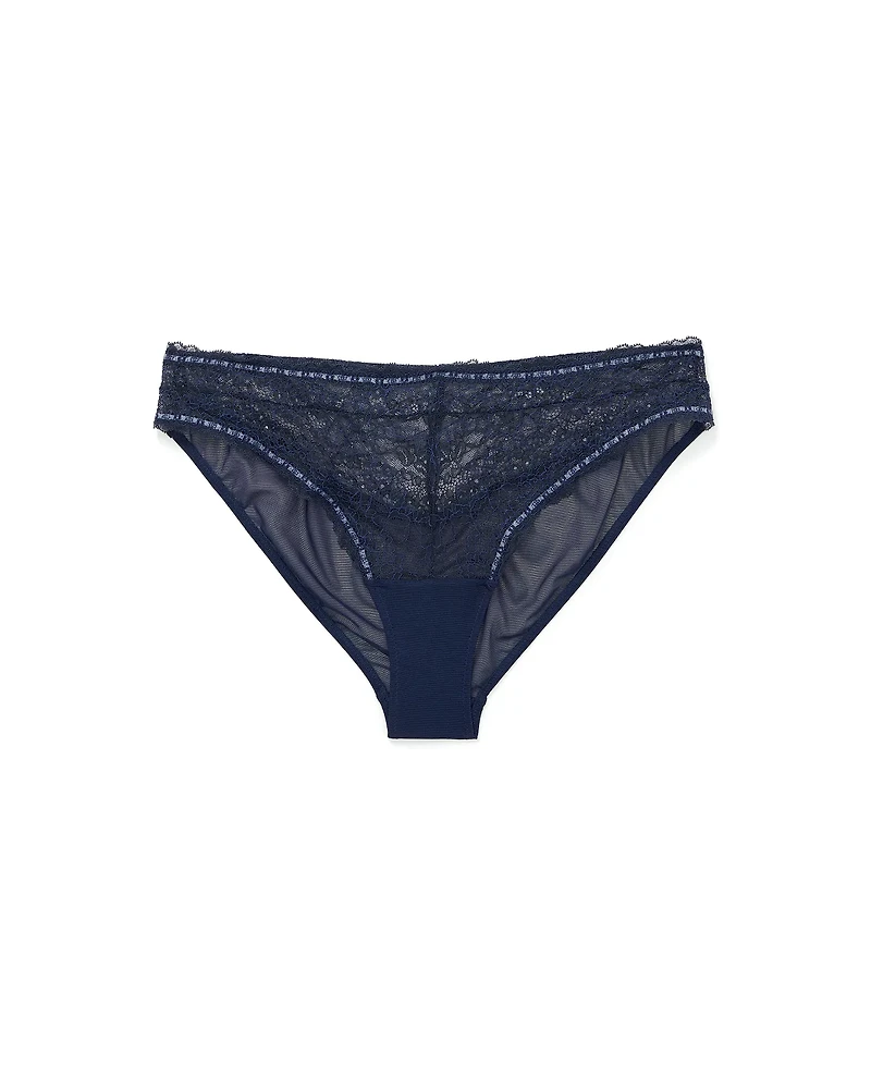 The Tanzy Bikini Dark Blue lace bikini is a romantic and alluring essential. Designed in a classic bikini style, it features beautiful lace for a touch of elegance. (Available in sizes M-4X.)