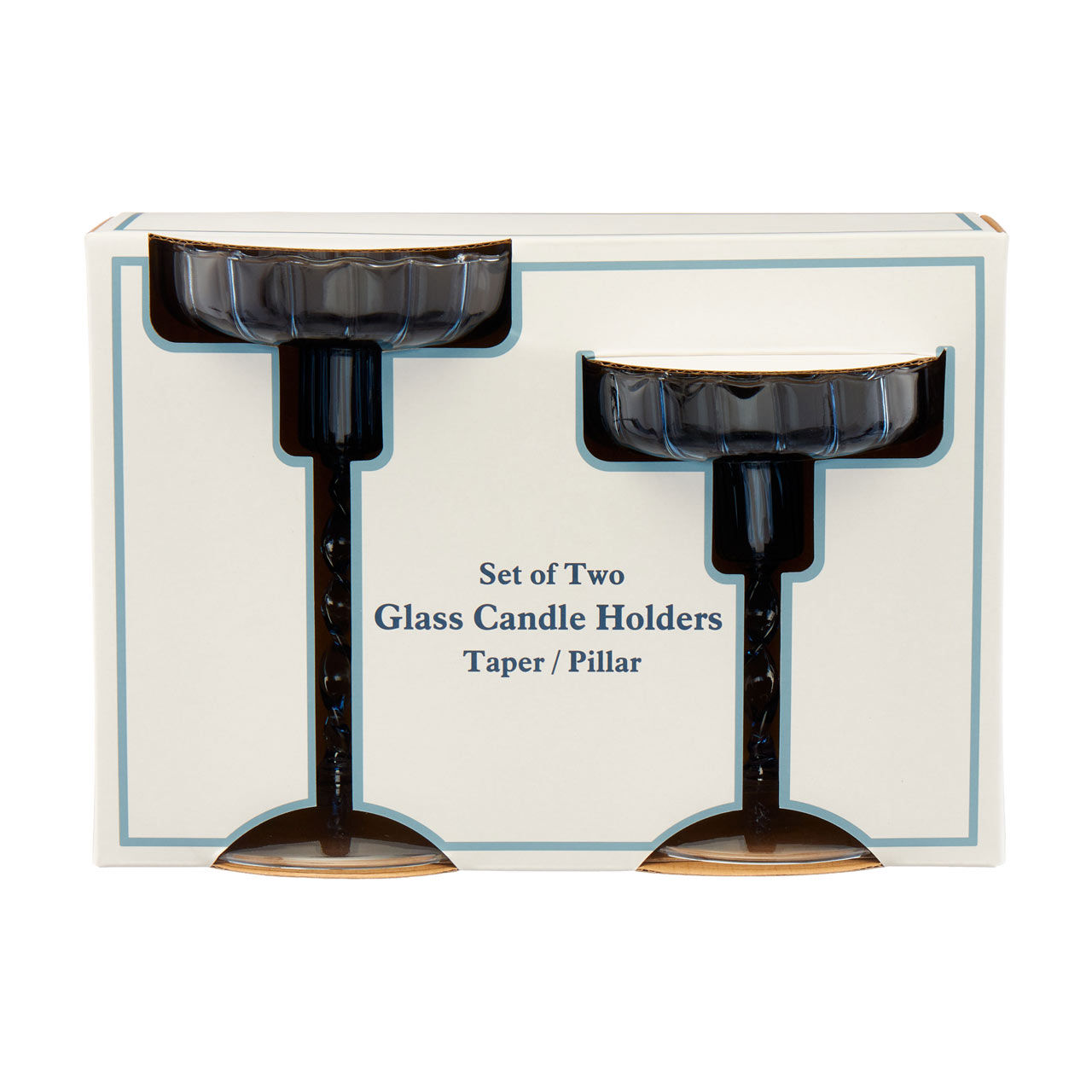 The set includes two beautifully designed holders, each featuring a uniquely twisted stem that adds a modern twist to their classic appeal. The delicate blue hue of the glass complements a variety of color schemes, making them versatile additions to your home.