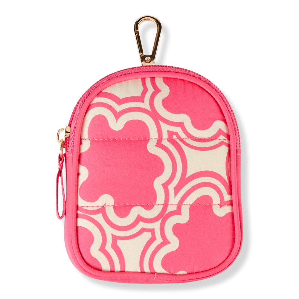 FLORAL PINK KEYCHAIN PUFFER POUCH. Features: Soft, quilted puffer pouch with trendy floral print. Sturdy gold-tone hook holds keys. 3.75 x 0.875 x 4.5. Water Bottle NOT included. : :