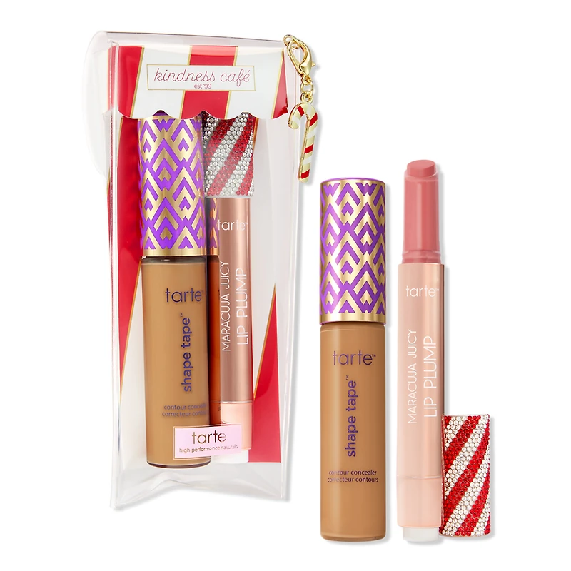 HL25WRDWNRSBSTSLRSSTG 16NFRLGHTNTRL. Benefits: 2 icons, 1 legendary set (to keep or gift). shape tape concealer + FREE limited-edition maracuja juicy lip plump. lip plump with limited-edition rhinestone cap & candy cane scent . America's #1 concealer brand* with full coverage, natural matte finish thats ideal for oily skin. bow & go wrapped in a clear reusable pouch & topped with candy cane charm. dermatologist tested. *Source: Circana, U.S. Prestige Beauty Total Measured Market, Makeup Sales, January-December 2024 combined. Features: 100% saw immediate hydration** & more plump lips*** with maracuja juicy lip plump. 100% said shape tape concealer doesnt crease or look cakey, leaving skin looking & feeling smoother****. 100% said shape tape concealer covers dark circles & undereyes look smoother****. **based on a clinical study of 30 subjects. ***based on a clinical study of 30 subjects after 10 minutes. ****based on a consumer panel study of 32 subjects. Key Ingredients: maracuja juicy lip plump. maracuja oil: rich in essential fatty acids & vitamin C for smoother, softer-looking lips. hyaluronic acid: moisturizes & plumps look of lips. 10+ superfruit complex: antioxidant-rich to help smooth, nourish & hydrate. shape tape shea & mango butters: moisturizes & conditions. licorice root: brightens & evens look of skin.