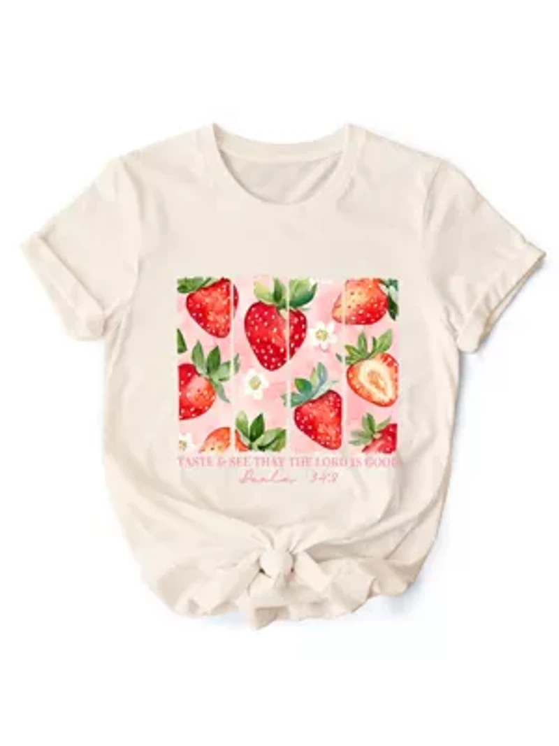 A soft, easygoing graphic tee that pairs a joyful scripture message with an everyday wearable feel, inspired by Psalm 34:8 and the reminder to trust, taste, and see God’s goodness in daily life. Designed to feel relaxed and breathable for all-day wear, it works just as well layered with denim as it does on its own, making it a natural choice for church, casual outings, or quiet moments of reflection. The message stays uplifting without feeling heavy, offering a faith-forward look that feels modern, approachable, and easy to reach for year-round Pullover Crew neck Short sleeve, Drop shoulder sleeves Unlined USA Imported Product Specifications Regular Material & Care 100%CombedCotton Machine washable
