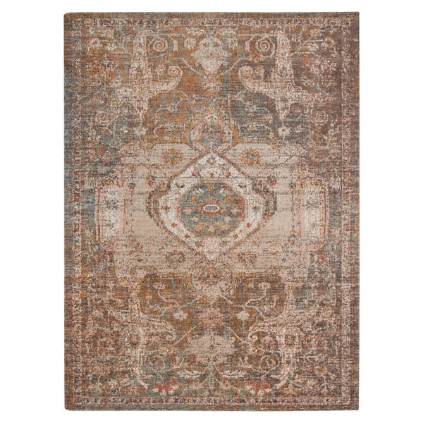 Vintage patterns meet modern elegance in this beautiful Taupe Eaton Transitional Area Rug. This unique textile will look beautiful in your dining room space. Rug measures 5 ft. 7 in. in length x 7 ft. 6 in. in height Crafted of polypropylene Machine made construction Distressed medallion pattern Hues of tan, white, blue, and orange Rug pad not included Care: Vacuum regularly. Blot spills with a mild detergent and clean cloth. Not safe for outdoor use. This item is available at Kirklands.com only, not available in stores. Please note: this item cannot be shipped to APO/FPO addresses.
