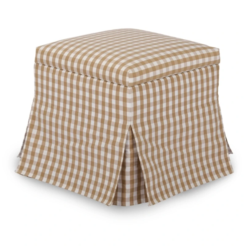 Add charm, function, and timeless style to any room with this Taupe Gingham Skirted Storage Ottoman! Wrapped in a classic check pattern, it brings a fresh, cottage-inspired look with convenient hidden storage—perfect for storing blankets or everyday essentials. Ottoman measures 17.3L x 17.3W x 18H in. Crafted with a wood frame Upholstered in fabric and filled with high-density foam Square shape Features a lift-off top with interior storage space Skirted design Gingham fabric pattern Hues of taupe and white Weight: 16 lbs. Weight capacity: 330 lbs. No assembly required Not intended for commercial use Care: Spot clean. Contact your local Kirkland's store for availability. Quantities and selection may vary by location.