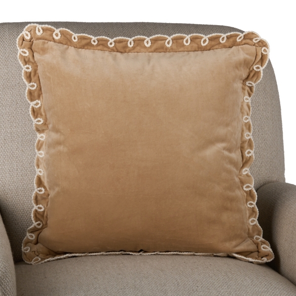 Taupe Velvet Looped Trim PillowTaupe Velvet Looped Trim Pillow