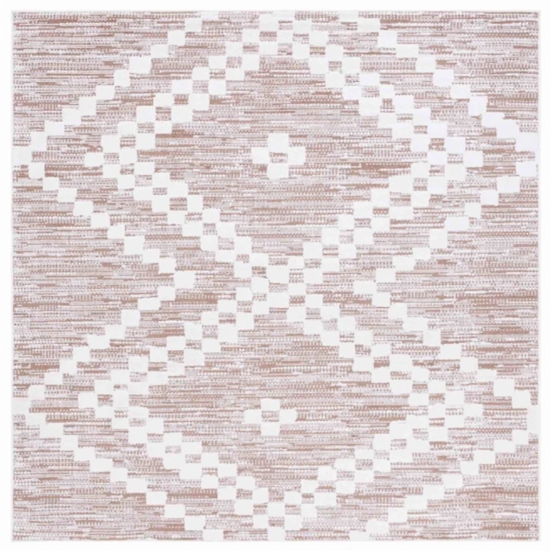 Taupe & White Bohemian Diamond Square Rug, 6x6