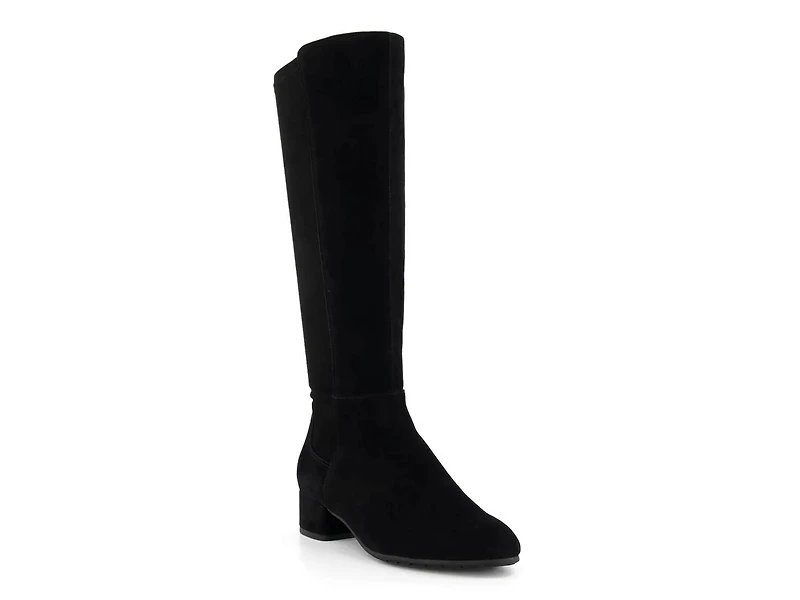 Add a fashion-forward edge to your attire with the Dune London Tayla boot. The suede upper brings a premium finish to this knee-high boot crafted in a two-tone design for an eye-catching look. A low block heel adds elevated appeal.
