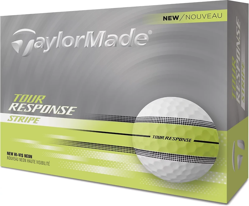 Keep an eye on your performance with this TaylorMade Tour Response Stripe™ Yellow Golf Balls 12-Pack. Each ball has a Tour Response Stripe™ to help you aim puts and receive immediate feedback, and 360° ClearPath Alignment™ technology helps you square up the ball.
