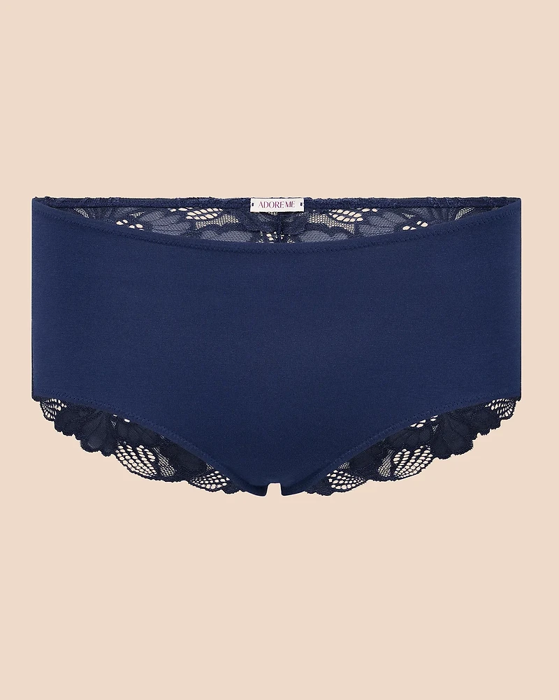 The Teagan Shortie Dark Blue soft-knit shortie is your new romantic essential, designed for comfort and style. This playful twist on the shortie panty is a perfect addition to your lingerie collection. (Available in sizes XS-XL.)
