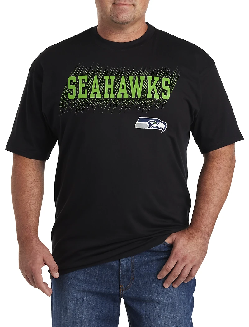 To have the heart of a true champion, you must wear the shirt. Proudly displaying your favorite football team's team name and logo on the front, this NFL team tee is crafted of lightweight and breathable cotton to keep you cool and comfortable on and off season. Whether you're playing the game, at the game, or watching from your favorite chair (we know you have one), it's a winning look for your T-shirt collection.