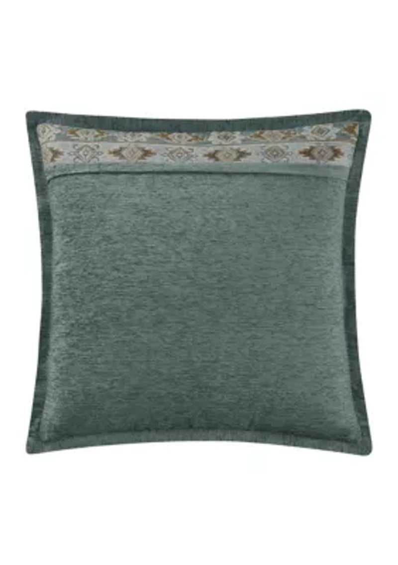 The Telluride Euro Sham is made of a soft velvet chenille that directly matches back to the comforter set. The Southwest stripe details provide the finishing touch and make it a must-have backdrop to the Telluride bedding collection (each sham sold separately). DESIGN DETAILS •Trimmed with self-fabric piping •Hidden zipper •Coordinates with the comforter set and accessories (each Euro sold separately) 1 piece(s) included 26 -in. x 26 -in Imported Product Specifications 26" x 26" Material & Care Polyester Dry clean only
