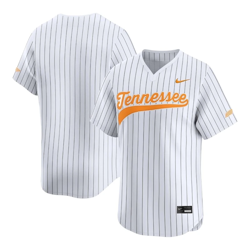 This Tennessee Volunteers White Pinstripe Nike Replica Blank NCAA Baseball Jersey is an officially licensed NCAA jersey made by Nike. Its a classic full-button design that features crisp applique graphics with a Nike swoosh on the chest.Nike NCAA Jersey DetailsDesigned for fans who want the look without paying top dollarFull-button frontRounded hemMaterial 100% polyester Ultrastitch poly sublimated twill lettersOfficially Licensed by the World Baseball Classic