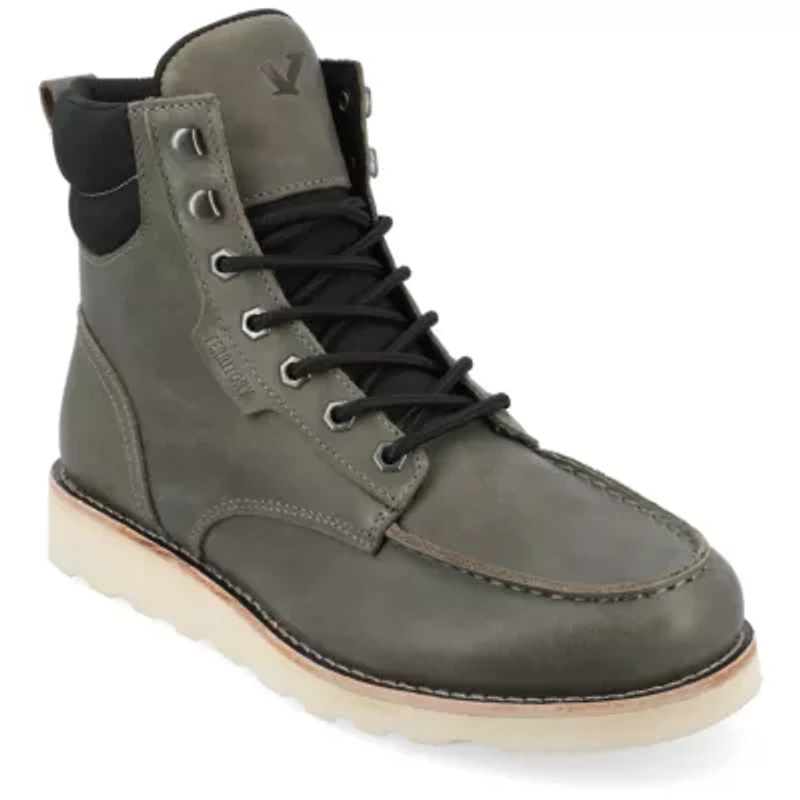 Get ready to Venture into the wild with Venture by Territory, the rugged ankle boot that combines style and durability. Crafted with water-resistant genuine leather and featuring a two-tone design, Venture is both fashionable and practical. The lace-up and moc toe design ensures a secure fit, while the 1 1/4-inch eva sole provides traction and comfort. With its 6 mm tru comfort foam™ insole, Venture offers superior cushioning and support, making it the perfect companion.