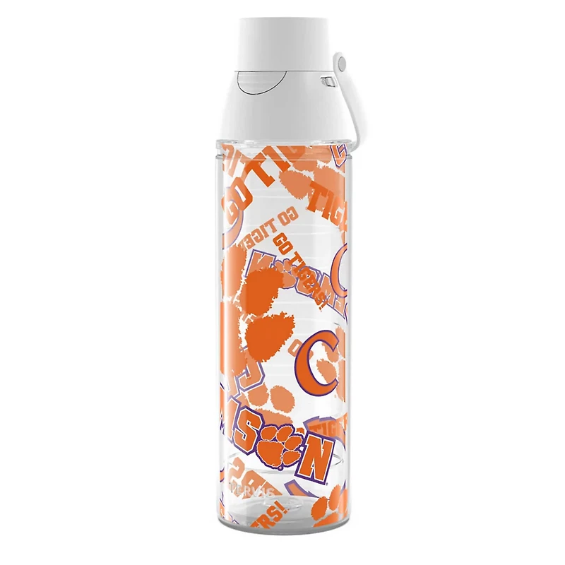 Rep the Clemson Tigers with every sip you take from this Allover Venture Lite water bottle from Tervis It's designed with double-walled insulation and a secure lid to help keep your beverage hot or cold for longer periods of time The Clemson Tigers details showcase your love for your team everywhere you take this premium bottle