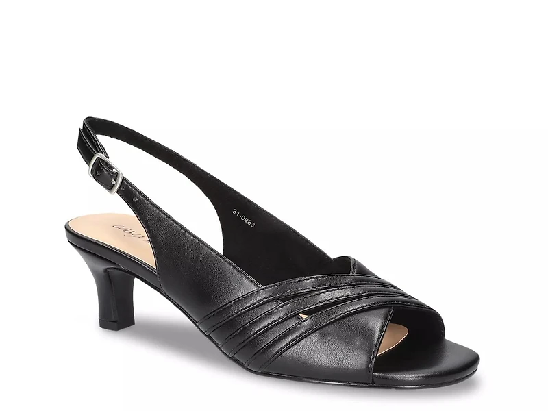 Touch up your ensemble with the Teton sandal from Easy Street. Multi-strip overlay with stone accentuation brings a precious look to the slingback pump. With a padded footbed, you can enjoy daylong comfort.