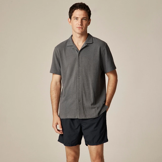 Textured camp-collar sweater-tee