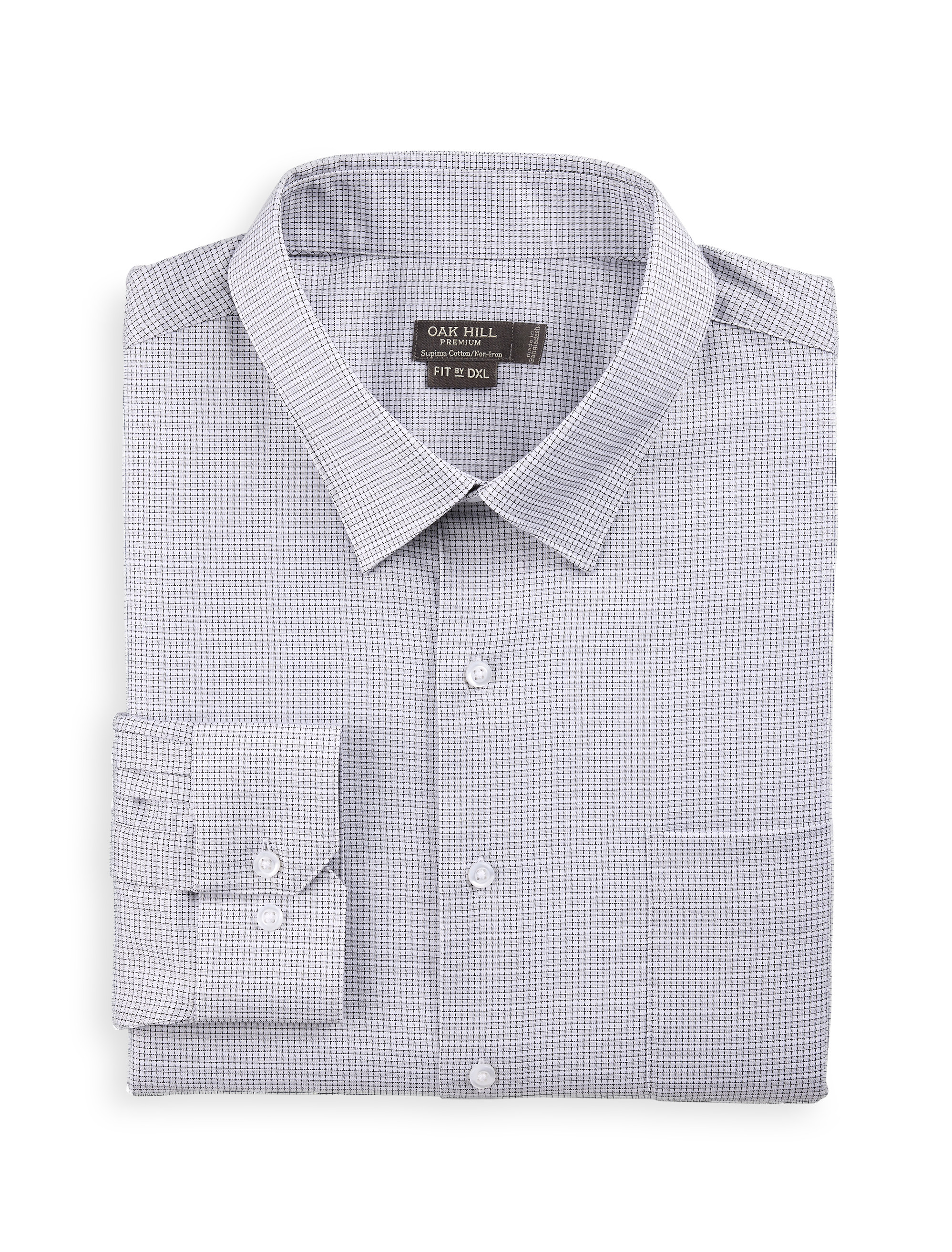 Treat yourself to unparalleled luxury with this Oak Hill Premium dress shirts. Crafted in an American-grown Supima cotton blend, it offers unmatched softness and durability. Non-iron convenience streamlines your routine, while the unbreakable buttons ensure longevity. Designed at DXL with precise proportions and an ideal fit for Big and Tall guys, it resists pilling and keeps it color wash after wash for longer wear. In a fresh-for-the-season color palette, it keeps you looking polished all day and the collar stretches up to an extra ½" for added comfort.