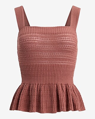This sweater tank features a square neckline, a peplum hem, and a textured finish.