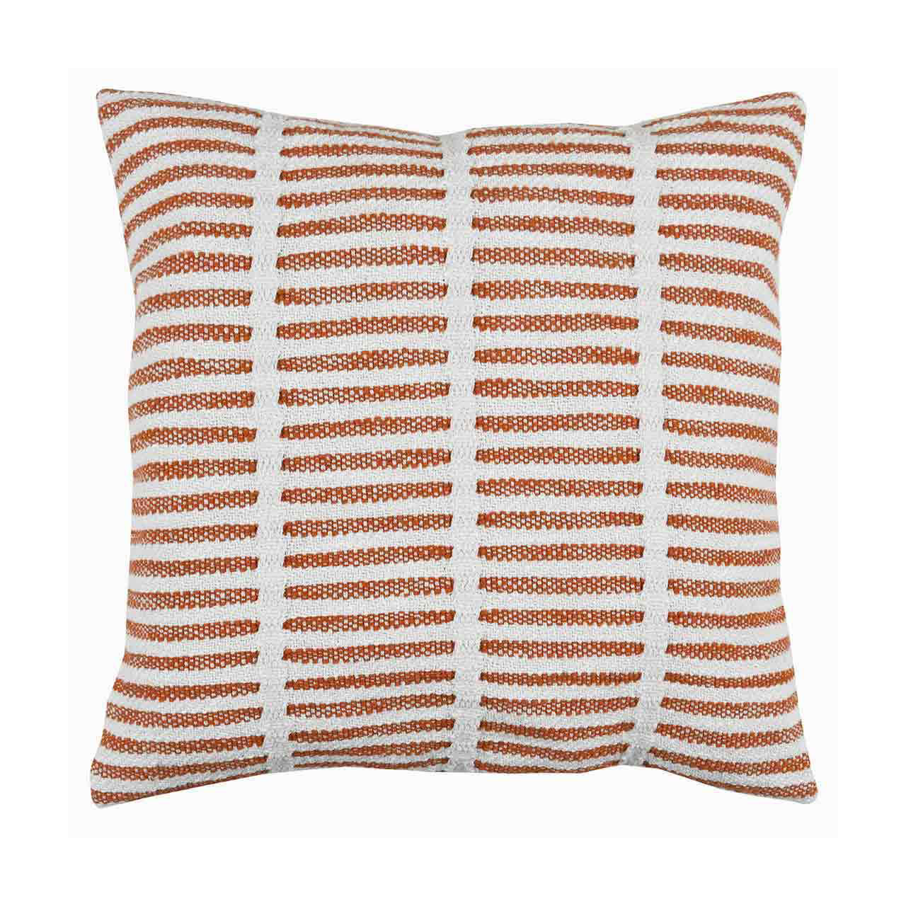 - 18-inch square pillow with orange and white striped design