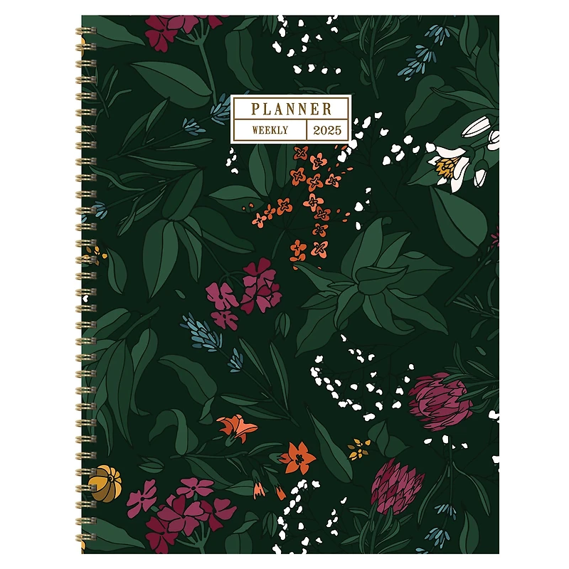 Cultivate your plans with this large weekly/monthly planner featuring a vintage flower garden cover design and boasts monthly, two-page calendar grid overview pages with space to write tasks and highlights. Weekly, two-page spreads provide plenty of planning space. Interior planning pages are accented with rich colors and faux monthly tabs for easy access to weekly planning. Bonus lined notes pages are in the back and yearly 2025 and 2026 views are included in the front. The planner has a durable cover and gold wire-o binding to lay flat when open and includes 368 color coordinating stickers. This 12-month planner covers the months of January 2025 - December 2025 and contains no plastic. Goods Without Guilt!