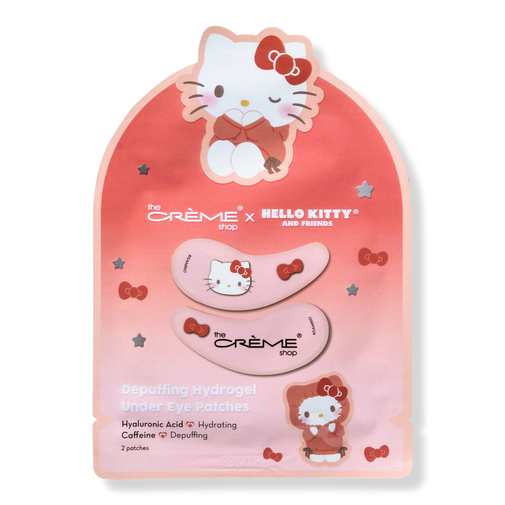 HELLO KITTY UNDER EYE PATCHES 1PR. Benefits: Helps refresh under eyes. Helps depuff under eyes. Key Ingredients: Hyaluronic Acid - Hydrating. Caffeine - Depfuffing. :