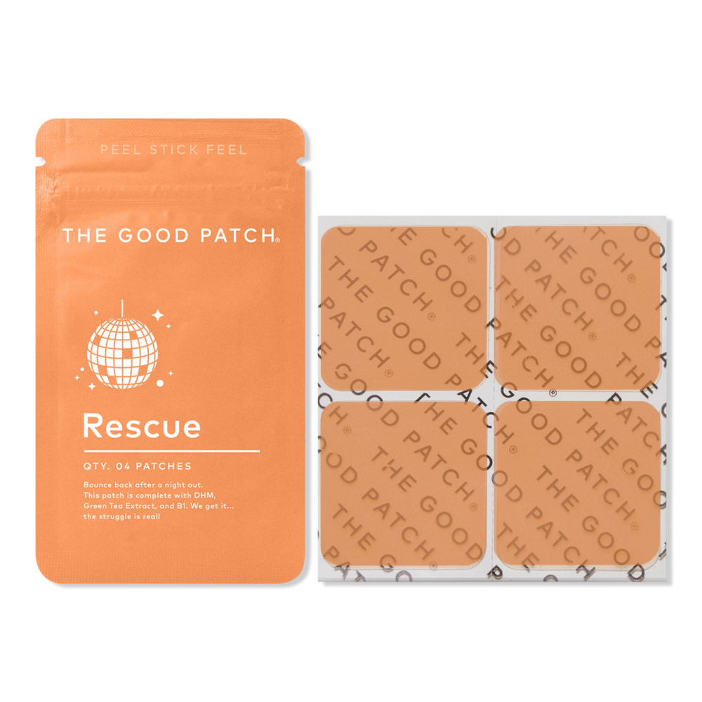 PLANT BASED PATCH 4CT RESCUE. Features: Vegan, made without latex, paraben free, dermatologically tested, and made in the USA with global ingredients. Benefits: EASY TO USE: Simply peel, stick on your wrist or any venous area, and feel.. RESPONSIBLY MADE: Vegan, made without latex, paraben free, dermatologically tested, and made in the USA with global ingredients. Key Ingredients: DHM. Vitamin B1. Green Tea Extract.