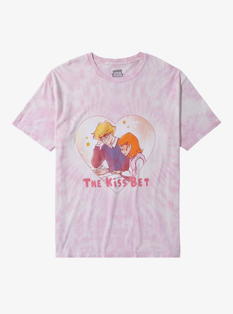 We're rooting for you, Subway Boy! Add your favorite WEBTOON to your wardrobe with this tie-dye tee, featuring a heart-shaped portrait in the center with Oliver and Sara Lin. Please note: Wash pattern may vary.