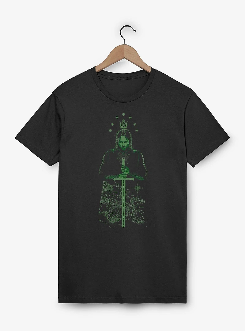The Lord Of The Rings Arragorn Over Map Of Middle Earth T-Shirt