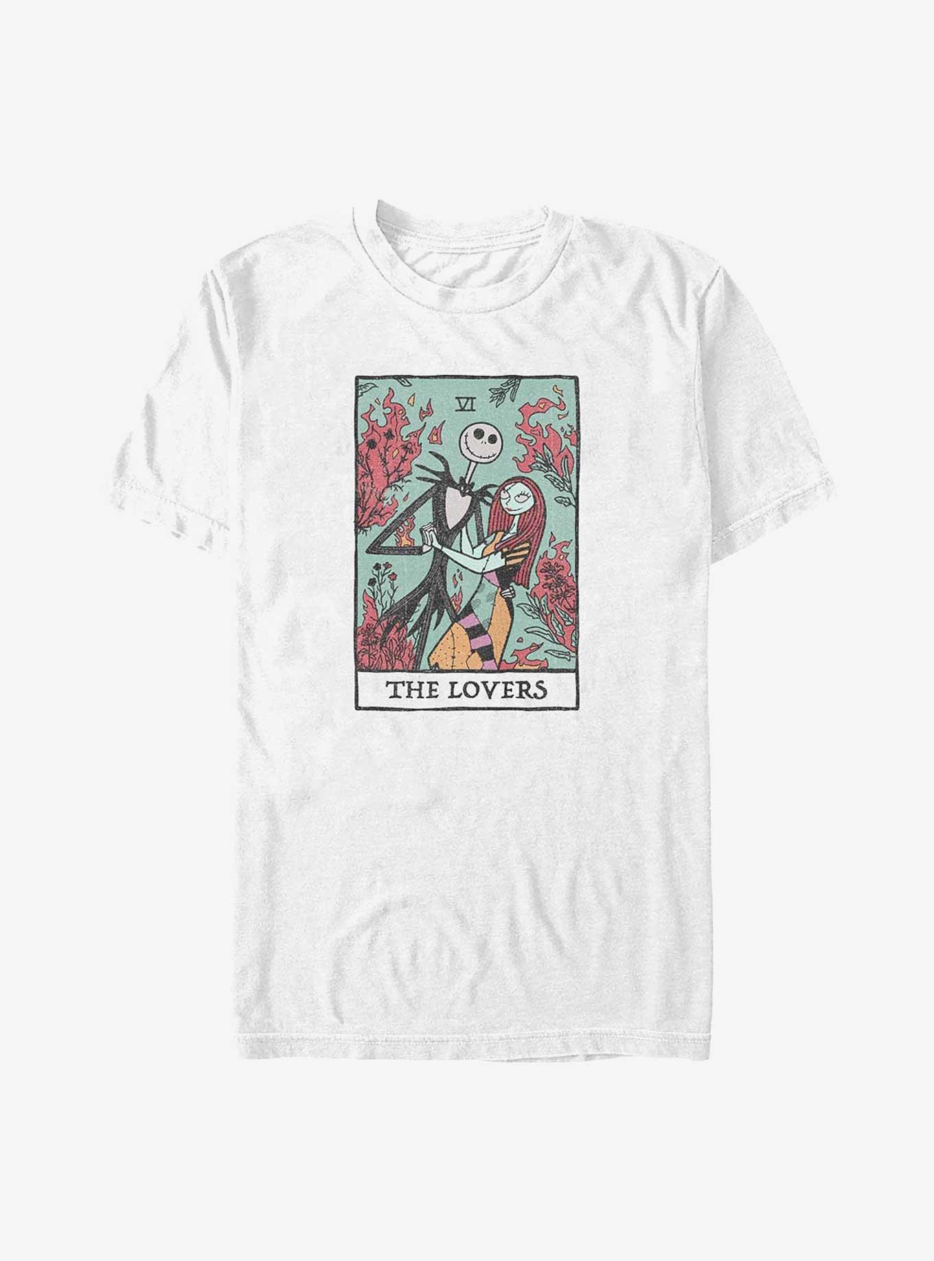 Even the cards can tell that these two are simply meant to be! From The Nightmare Before Christmas , this tee features a tarot card-inspired design featuring Jack and Sally depicted as "The lovers."