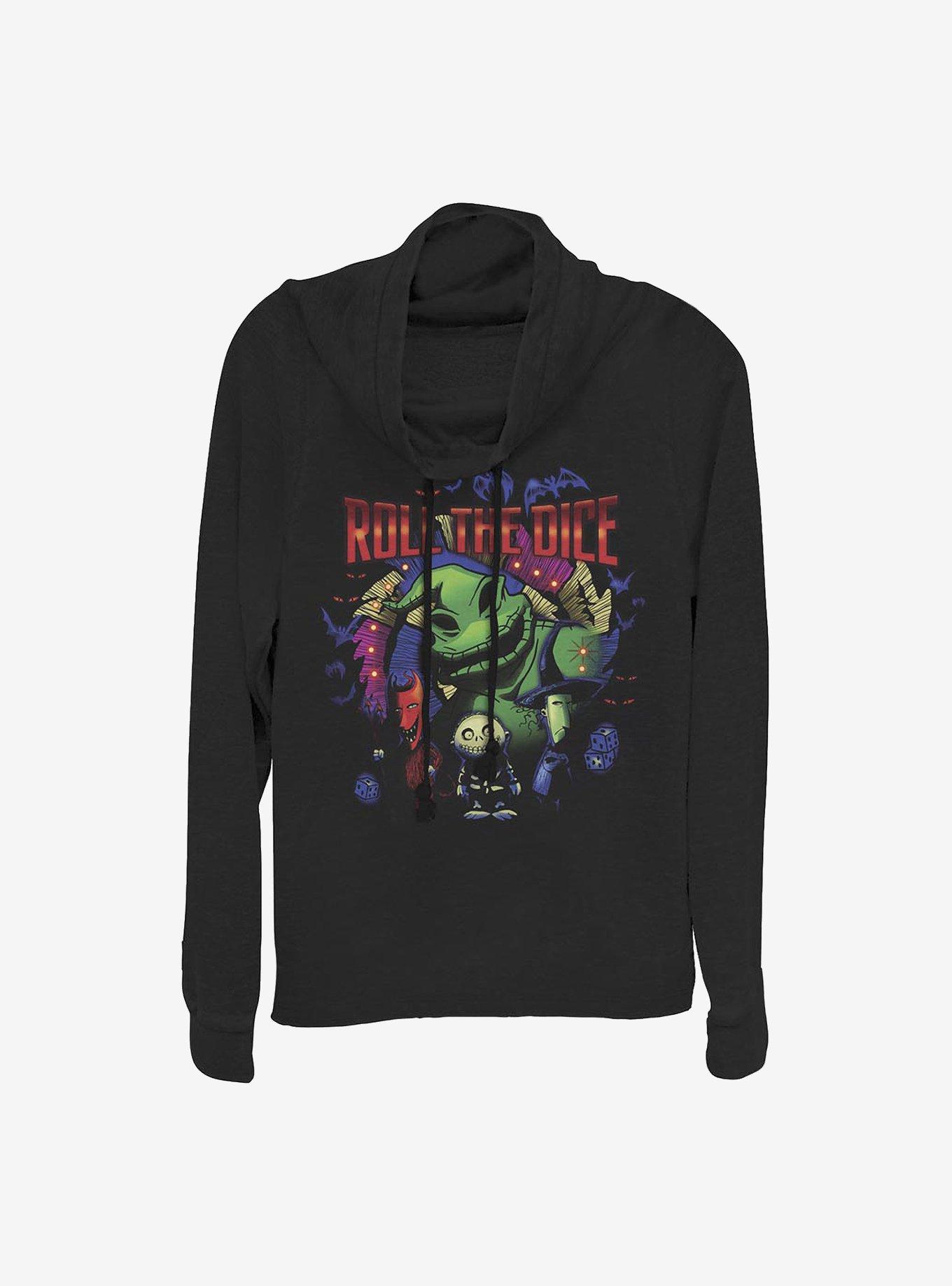 Roll. The. Dice. This cowlneck top -- inspired by The Nightmare Before Christmas -- features the gamblin' boogie man, Oogie Boogie, with Lock, Shock and Barrel. Watch out -- they don't play fair!