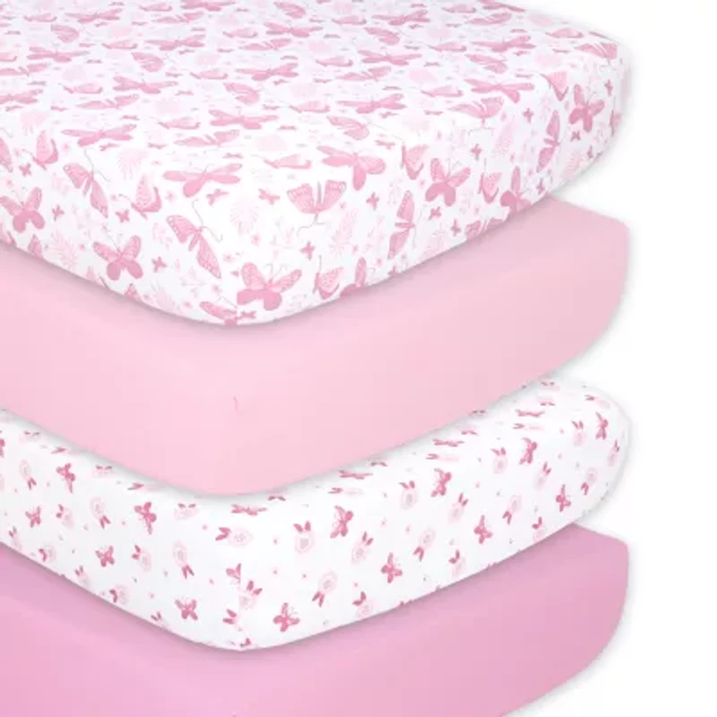 The Peanutshell Pink Butterfly 4-pc. Crib Sheet