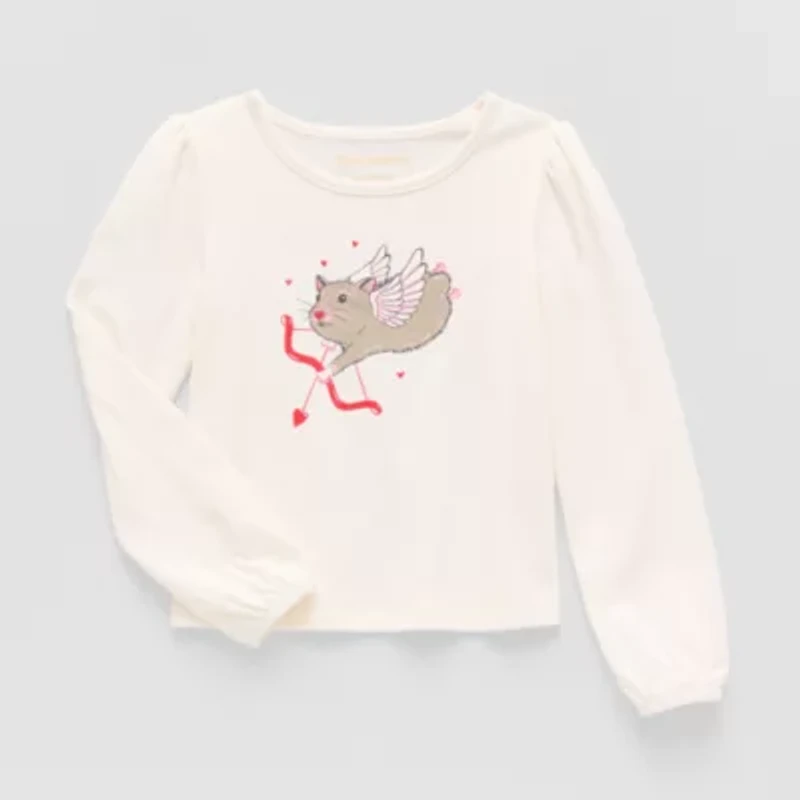 Thereabouts Little Girls Round Neck Long Sleeve Regular Fit Graphic T-Shirt