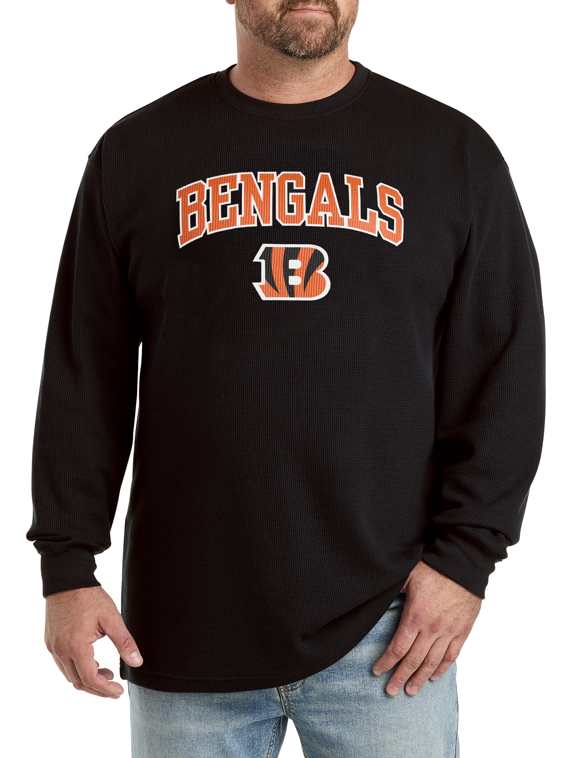 NFL fans, it's time to add a new player to your tee roster for the season. This long-sleeve thermal T-shirt in a soft, breathable cotton blend is cut with a roomy fit to keep you comfortable long past the final score. Designed with precise proportions and an ideal fit for Big and Tall guys, it's comfortable, easy-to-wear and the perfect choice to pair with jeans for a complete, casual look.