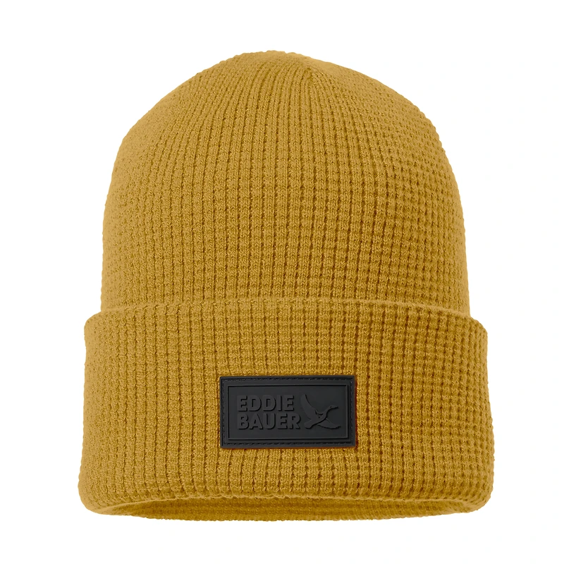 Thermal-knit, self-lined beanie is made with recycled polyester. The 3.5" cuff unfolds to cover ears.