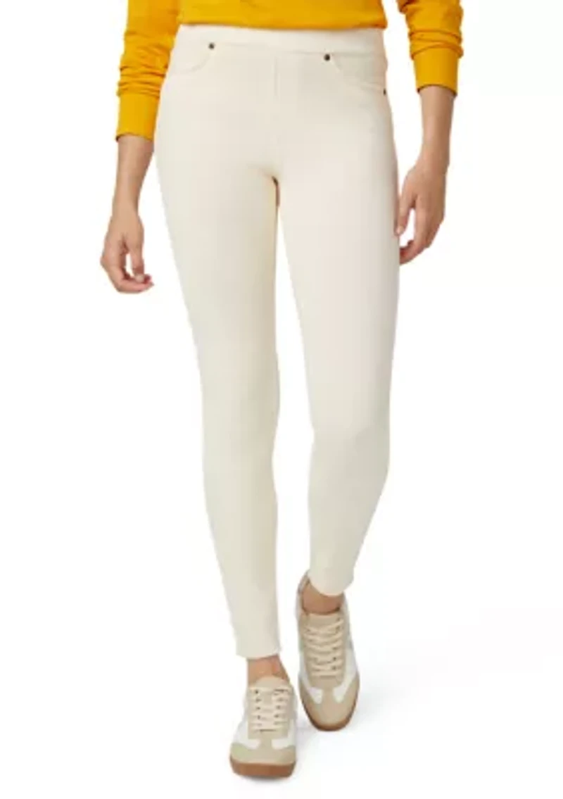 Turn heads with these fashionable corduroy leggings that feature a snug, comfortable stretch fit. Sleek, thin-wale corduroy material will have you looking stylish. Wider waistband and stretchable ultra-soft fabric allow a versatile range of motion, unlike traditional corduroy material. Wear them to work with a dressy top, or get casual and relaxed and pair with a tunic or shirt. Featuring a 29" inseam. Sleek, Thin-Wale Corduroy. Comfort Fit. Functional Back Pockets. Faux Front Pockets & Fly. Inseam: 29". Elastic waistband 2 back patch pockets Skinny fit Imported Product Specifications 29" inseam Material & Care Corduroy Machine washable