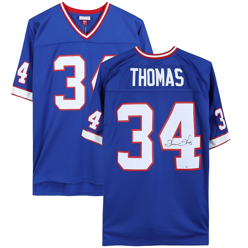 This jersey has been personally hand-signed by Thurman Thomas. It is officially licensed by the National Football League and comes with an individually numbered, tamper-evident hologram from Fanatics Authentic. To ensure authenticity, the hologram can be reviewed online. This process helps to ensure that the product purchased is authentic and eliminates any possibility of duplication or fraud.