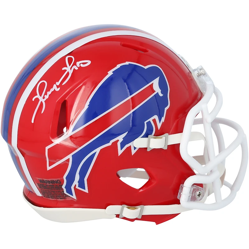 Elevate your collection of Buffalo Bills memorabilia with this Thurman Thomas autographed Riddell 1897-2001 Throwback Speed Mini Helmet. It features eye-catching team details and a distinct signature from the NFL legend. Additionally, this collectible includes an individually numbered, tamper-evident hologram that can be verified online to certify authenticity.