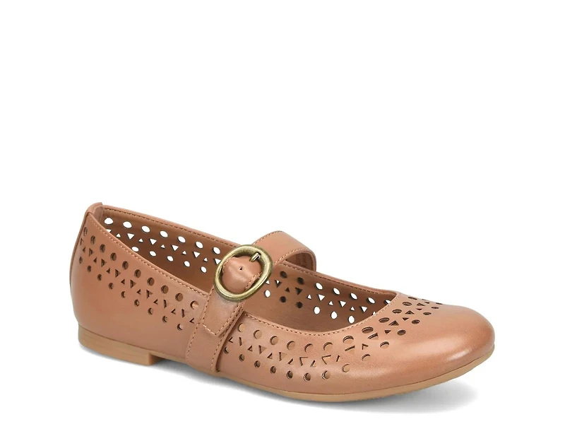 The Tiara Mary Jane from Eurosoft brings a fresh take on a familiar silhouette with its laser-cut upper and easy hook & loop strap closure. This round-toe style blends casual charm with a modern edge, making it a versatile choice for everything from running errands to heading out for a relaxed evening.