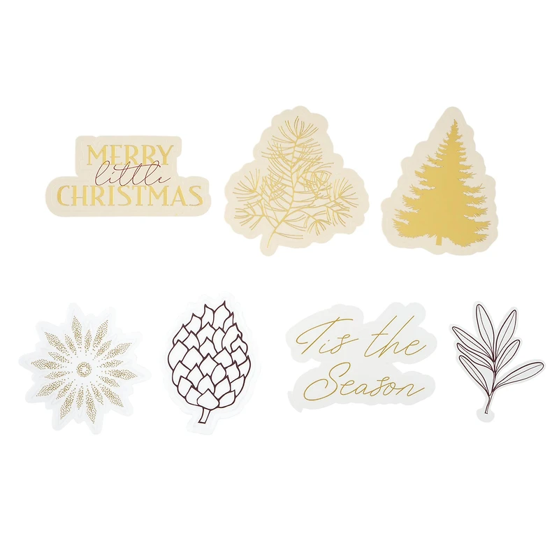 Featuring holiday tidings and assorted wintry designs, you can use these die-cut stickers to embellish your Christmas papercrafts. You can apply the stickers on a wrapped present, a gift tag, a card or a scrapbook.Details:Includes assorted designs16 stickersContents:9 cardstock stickers3 cardstock stickers with foil2 vellum stickers2 acetate stickers