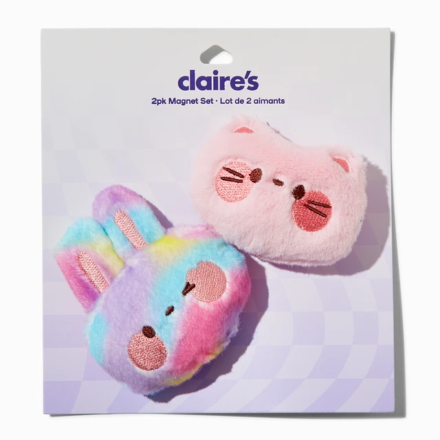 Tie Dye Bunny & Pink Cat Plush Magnet Set - 2 Pack