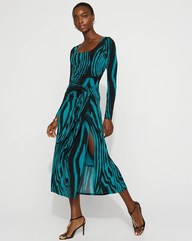 Preston & York Sydney V-Neck Short Sleeve Tie Waist Midi Dress