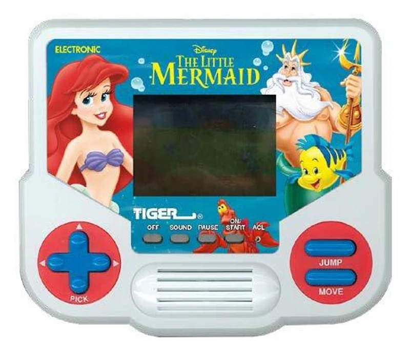 Just imagine going back in time! Gamers who are die-hard fans into retro tech, or are new to this genre, will love this Tiger Electronics: Disney The Little Mermaid electronic LCD video game, inspired by the original from the 1990s. It's a journey of discovery as players help Ariel pick up human possessions. But beware of Ursula, the evil sea witch! The design and technology were created with the original handheld game unit in mind. Look for other retro-inspired Tiger Electronics LCD video games. (Each sold separately. Subject to availability.)