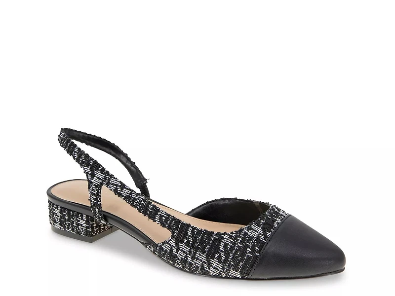 Give an elegant lift to your look with the Tillie flat from BCBGeneration. This d'Orsay style pump flaunts a stylish slingback strap with elastic gore to ensure a secure fit, while the padded footbed and a just-right block heel enhance comfort, making it ideal for anytime use.