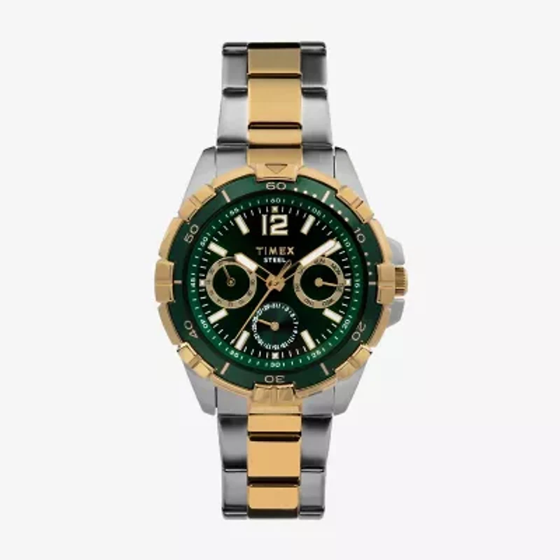 It's easy to see how this timepiece takes you from day to night. With refined sophistication in mind, the 45mm two-tone stainless steel case and bracelet and green multi-function dial offers a lasting look for years to come.