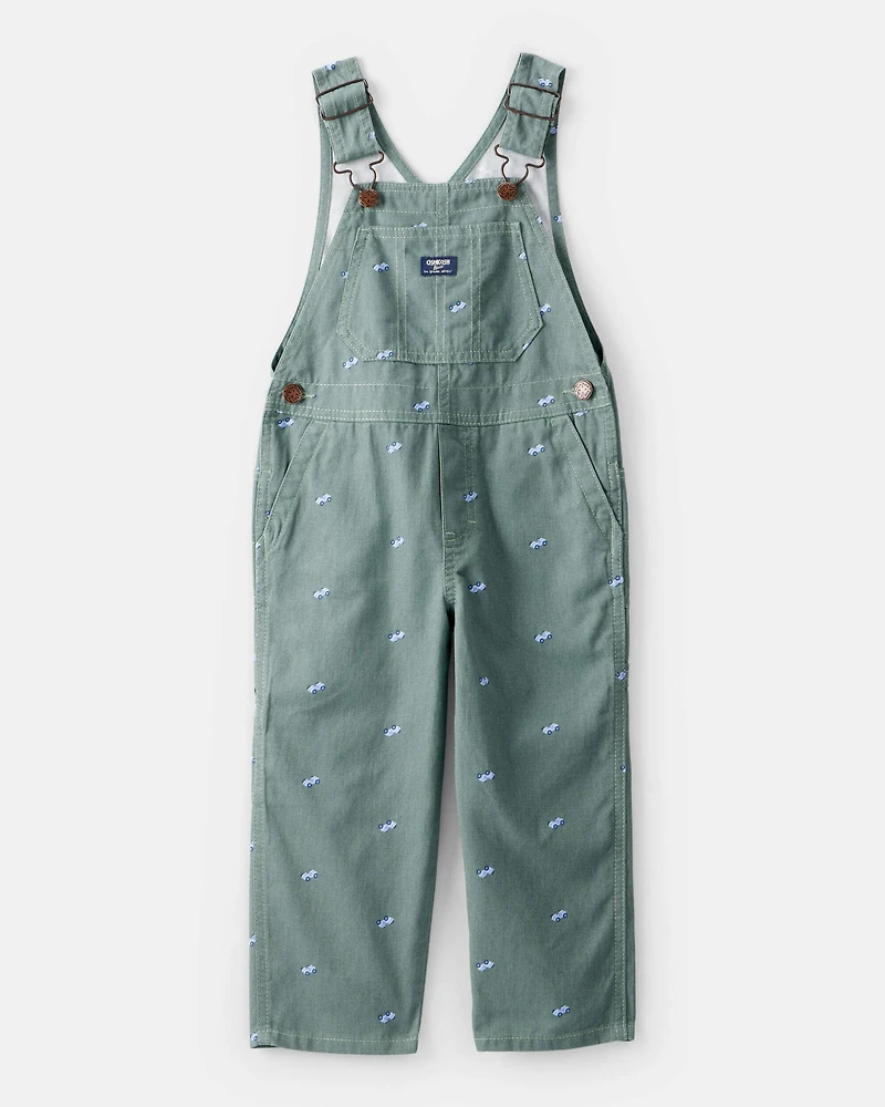 Toddler Boy Cars Canvas Overalls - Green
