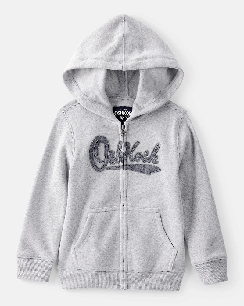 This one is a true MVP. Designed with soft fleece, this hooded jacket keeps your kiddo warm during cooler months or when it's just chilly inside a room. With a hoodie fit, this piece features a functional zipper for an easy on-and-off and front pockets for stashing their knickknacks. Plus, it has our signature OshKosh logo across the chest to remind you why this is your favorite. There is no doubt that this piece is the ultimate layer that your boy will pick up again and again.