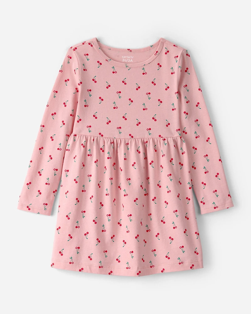Introducing the perfect blend of comfort and style for your little one. With its relaxed fit and soft pastel hues, this dress is designed for carefree days filled with play and adventure. Adorned with allover cherries, it captures the essence of childhood joy while making dressing a breeze. The long sleeves provide just the right amount of warmth for those breezy days, ensuring your child stays cozy and fashionable. Parents love its easy-care fabric, making it a go-to choice for every casual occasion.