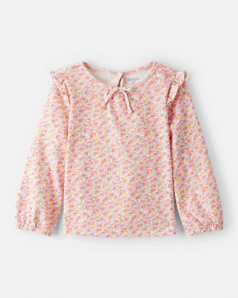 A top that makes getting dressed feel exciting and easy. Long sleeves, ruffled accents, and a bow detail give it just the right amount of style, while the floral print adds a charming touch she will love. Effortless with denim, it’s a shirt that she can wear from playdates to family outings with confidence.
