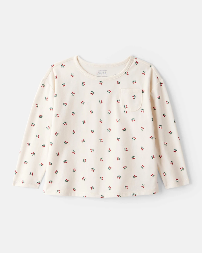 Toddler Girl Holly Berry Print Cotton Long-Sleeve Top - Cream in Chattanooga, TN