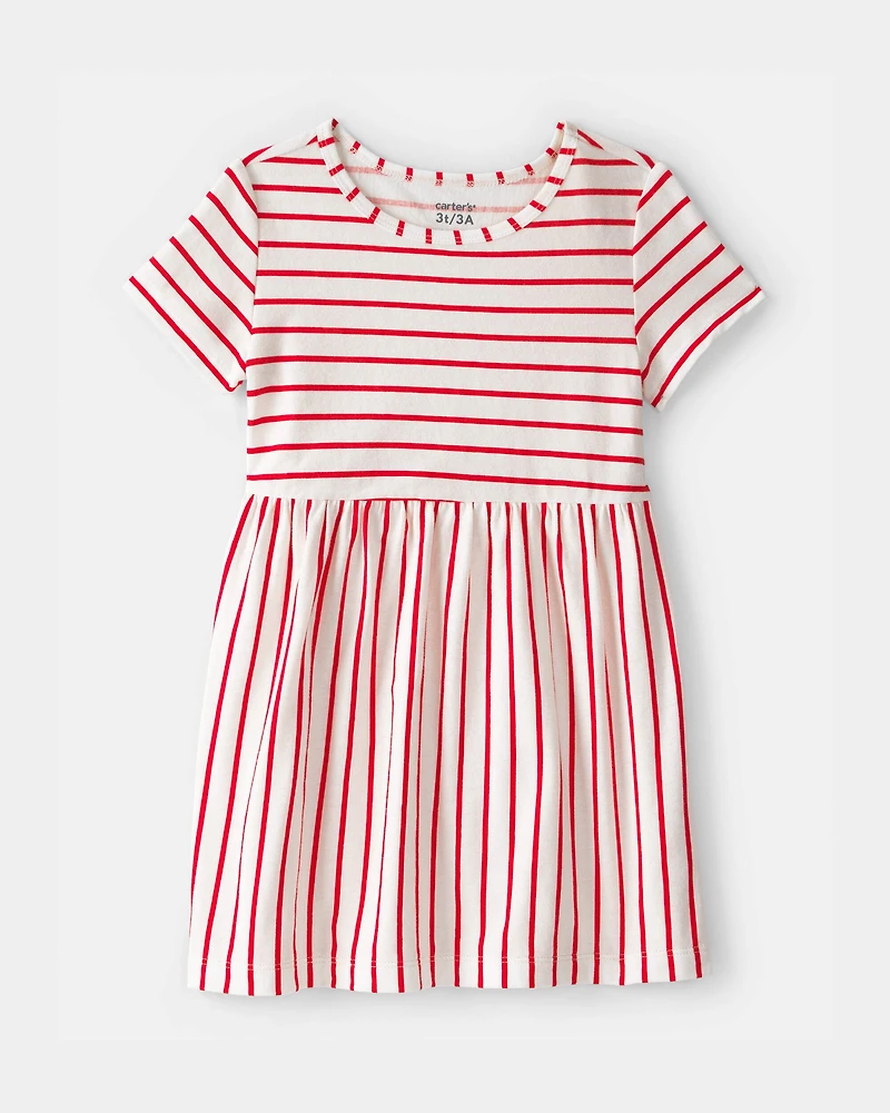 Toddler Girl Striped Short-Sleeve Dress - Red/Ivory