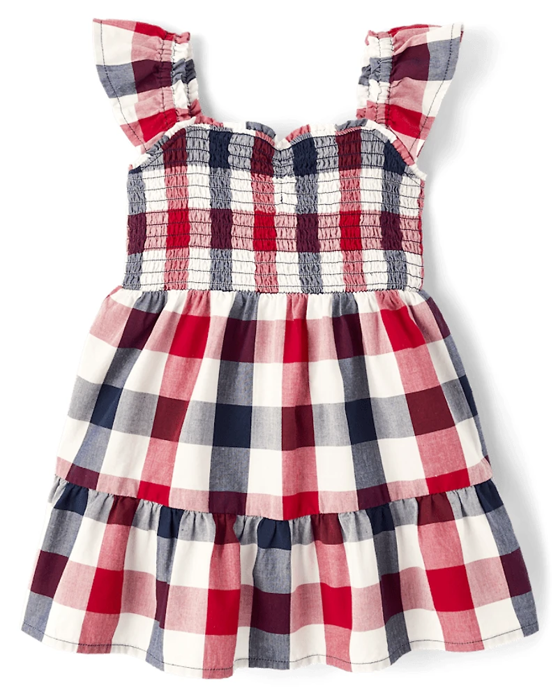 Toddler Girls Gingham Poplin Smocked Ruffle Dress in Chattanooga, TN